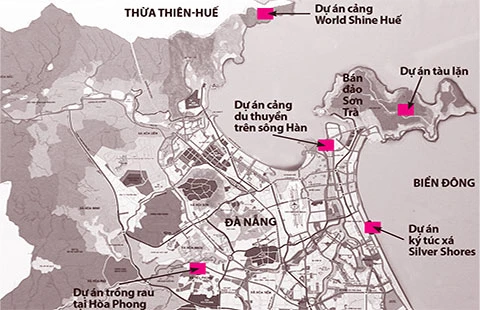 Theo tìm hiểu của chúng tôi, TP Đà Nẵng cũng có một số dự án có yếu tố nước ngoài nằm tại các vị trí quan trọng (Pháp Luật TP.HCM ngày 29-11 đã đưa tin ban đầu). Đầu tư nhiều nhất là Công ty TNHH Đầu tư và Phát triển Silver Shores (gọi tắt là Công ty Silver Shores, có lãnh đạo là người Trung Quốc, trụ sở tại số 8 Võ Nguyên Giáp, TP Đà Nẵng).