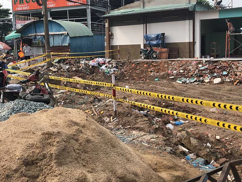 Ông Nguyễn Văn Hùng, người dân khu vực cho biết: “Tôi thấy công trình này thi công lâu rồi nhưng có rào chắn gì đâu. Các công trình khác người ta dùng tấm tôn để quây lại, đằng này họ dùng có cái dây làm dải phân cách thì nguy hiểm quá. Chỉ cần mấy đứa trẻ chơi đùa cũng dễ lọt xuống”.