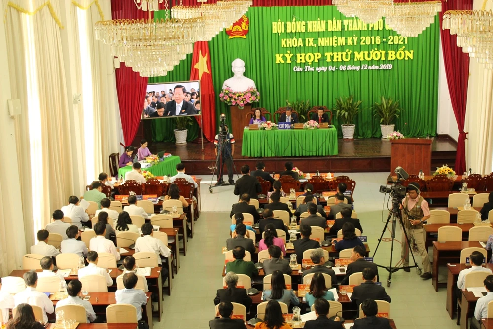 Quang cảnh phiên chất vấn sáng 6-12 tại kỳ họp HĐND TP Cần Thơ. Ảnh: NN