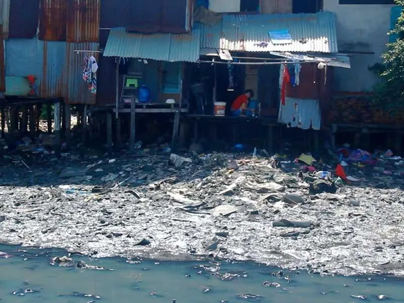 Người dân cạnh rạch Xuyên Tâm đang phải sống chung với nước đen và rác thải. Ảnh: NC