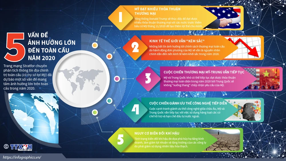 Trang mạng Stratfor chuyên phân tích thông tin địa chính trị toàn cầu (trụ sở tại Mỹ) đã dự báo năm vấn đề mang tầm ảnh hưởng lớn trên toàn cầu trong năm 2020.