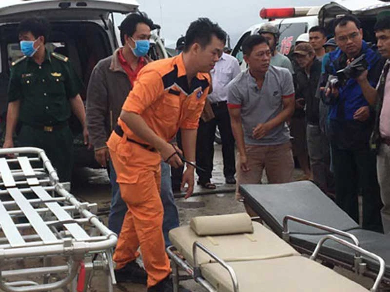 Lực lượng cứu nạn tiếp nhận thi thể thuyền viên mất tích trên biển Bình Định trong bão số 12. Ảnh: nhandan.com.vn