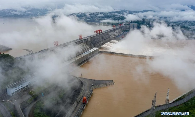 Đập Tam Hiệp mở cửa xả lũ trên sông Dương Tử hôm 18-7. Ảnh: Tân Hoa Xã