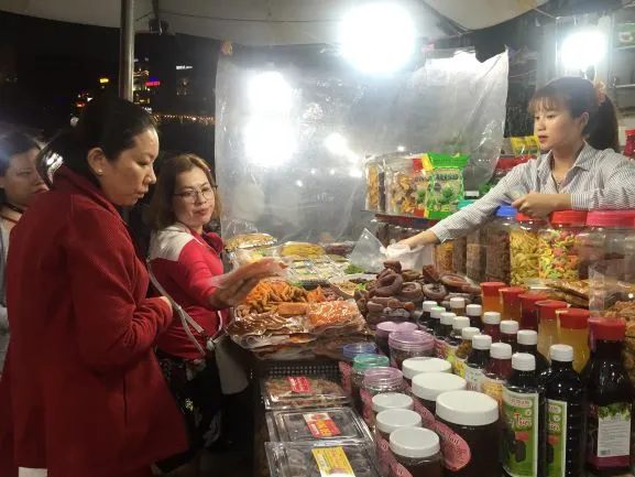 Khách du lịch mua đặc sản tại chợ đêm Đà Lạt .Ảnh :TÚ UYÊN