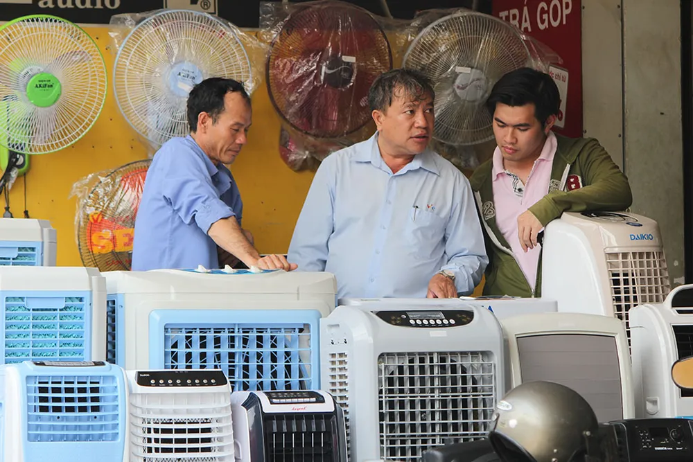 Người dân tìm mua máy quạt, máy lạnh tại một tiệm điện lạnh trên đường Kha Vạn Cân (quận Thủ Đức).