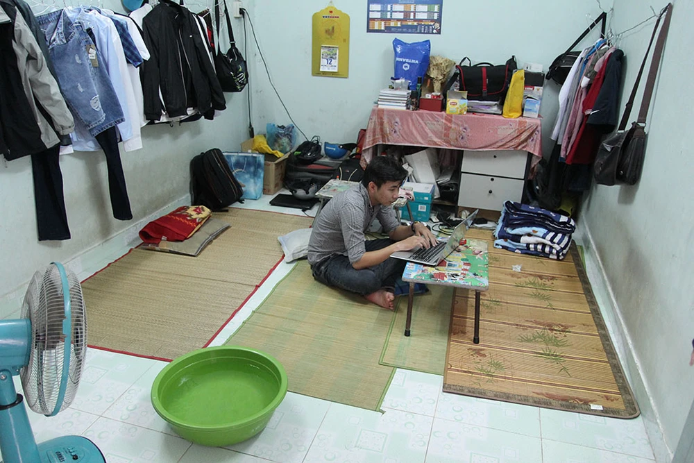 Vào giữa trưa, một phòng trọ trên đường Xô Viết Nghệ Tĩnh (quận Bình Thạnh) phải dùng chậu nước để trước chiếc quạt chạy tạo hơi mát.