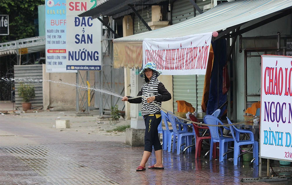 Những ngày này, nắng nóng gay gắt liên tục ở TP.HCM khiến nhiều người người dân đi học, đi làm, mưu sinh trên phố đều cảm thấy mệt mỏi. Chị Ngọc Nhi (Thủ Đức) cho biết cứ vào giờ trưa là phải dùng ống xịt nước trước và trên mái nhà để giảm bớt hơi nóng.