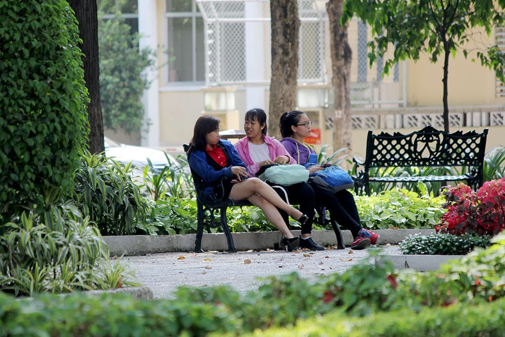 Một số bạn trẻ tìm đến công viên để tránh nắng vào buổi trưa.
