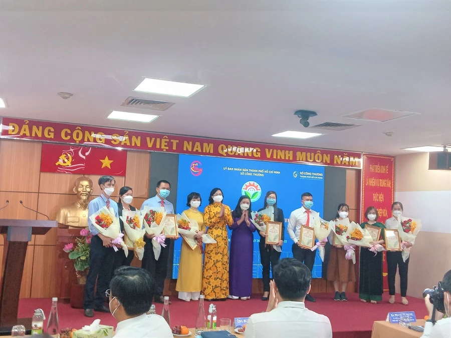 | Tại hội nghị tổng kết, lãnh đạo thành phố đã trao giấy chứng nhận của UBND TP.HCM công nhận 43 sản phẩm công nghiệp nông thôn tiêu biểu cấp thành phố năm 2021 cho 10 DN. |