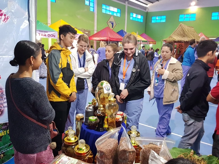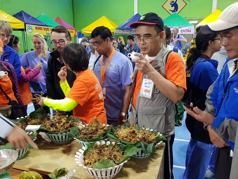 Phiên chợ sâm diễn ra trong hôm nay cũng là phiên chợ sâm đầu năm 2018, thu hút đông đảo du khách trong và ngoài nước đến tham quan và mua sắm những sản phẩm từ sâm Ngọc Linh cùng các loại dược liệu khác.