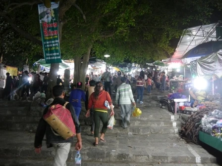 Từ khoảng 6h chiều, lượng khách cũng như phật tử đổ đến khu dịch Núi Bà Đen bắt đầu tăng.
