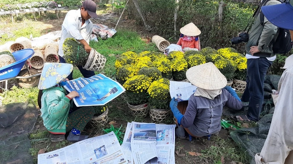 Hoa được gói cẩn thận chờ đến hẹn giao cho thương lái