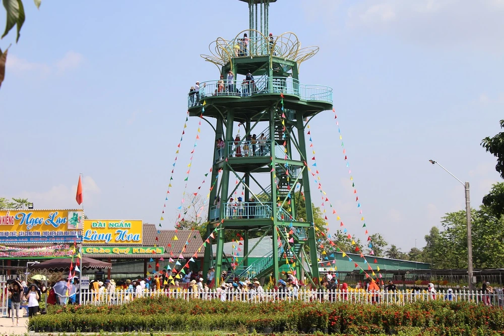 Để phục vụ nhu cầu tham quan, một nhà vườn đã đầu tư đài ngắm hoa hơn 1 tỷ đồng. Trên đài bố trí ống ngắm để khách tham quan có thể phóng xa tầm nhìn.