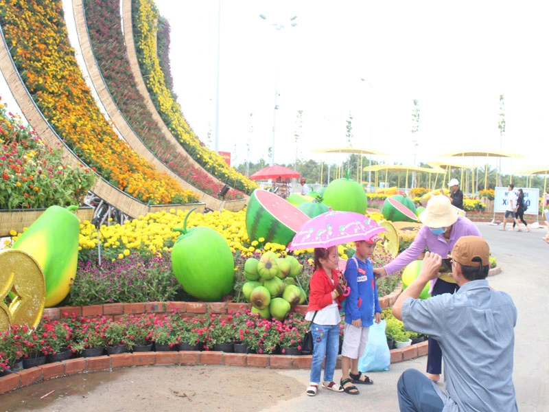 Trong những ngày đầu mở cửa, đường hoa TP Mỹ Tho thu hút rất đông người dân và du khách.
