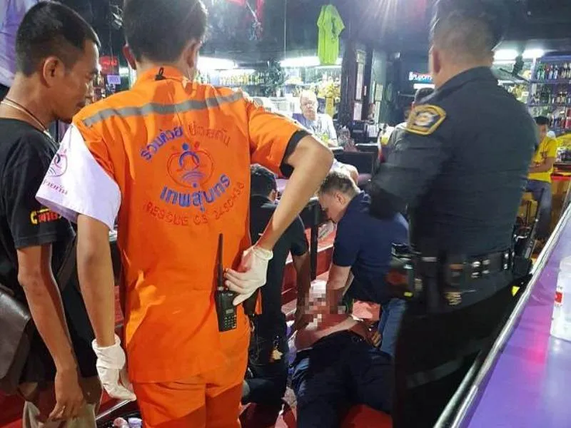 Một số nhân viên quán bar đã nhanh chóng cấp cứu cho nạn nhân nhưng anh ta đã không qua khỏi. Ảnh: Stickboybkk