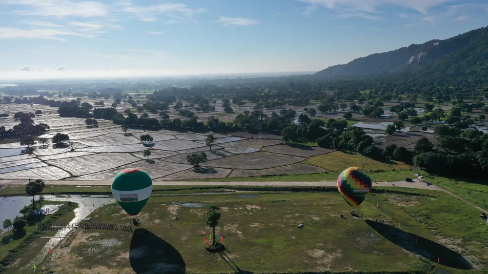 Lễ hội khinh khí cầu Tri Tôn, tỉnh An Giang chính thức khai mạc tại Khu Thể thao Du lịch Tà Pạ - Soài Chek, Núi Tô ( sân đua bò huyện Tri Tôn). |