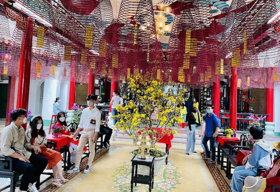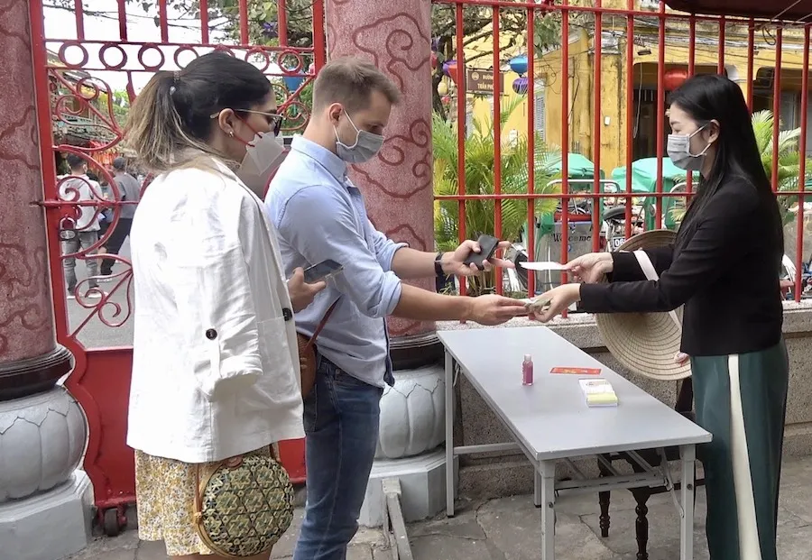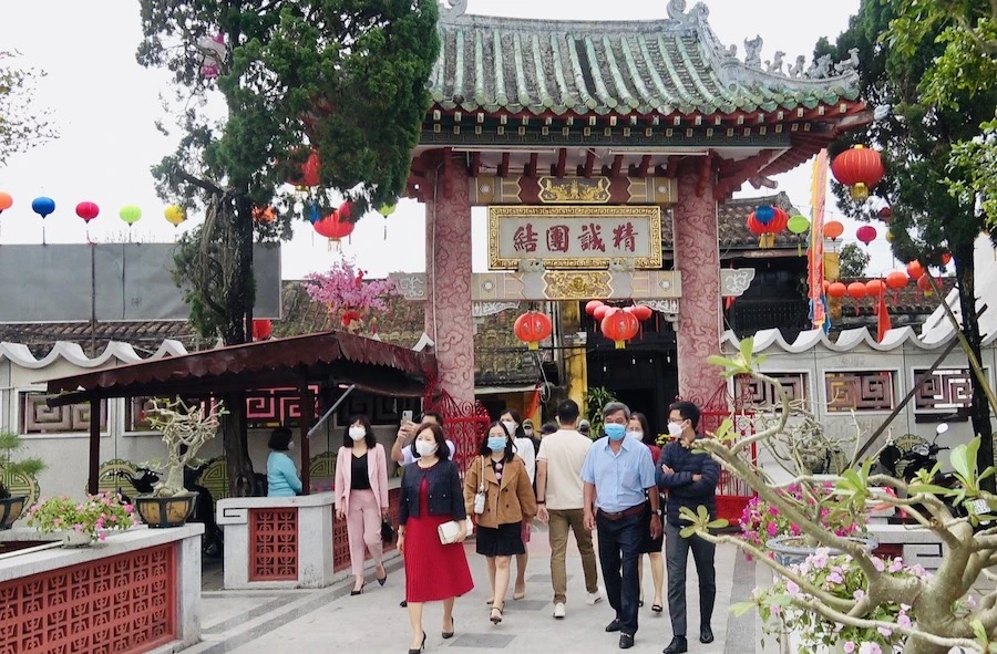 Du khách đến tham quan một ngôi chùa ở TP Hội An.