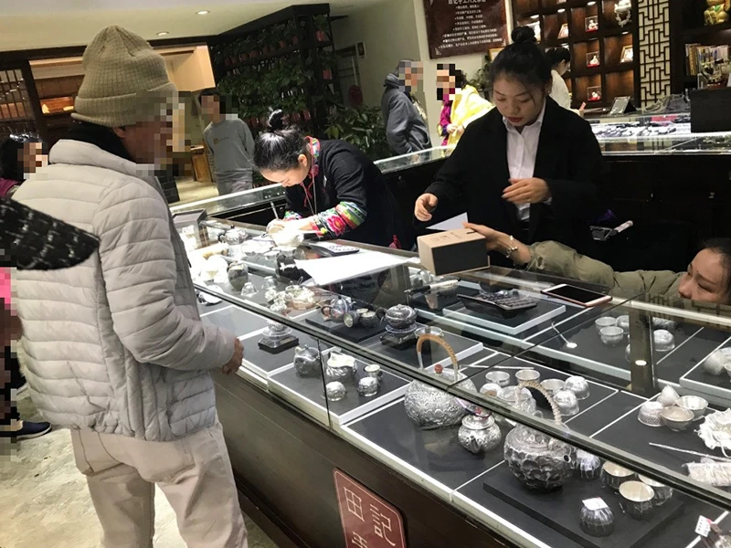 Tôi cũng chứng kiến khách trong đoàn dễ dàng móc túi gần 60 triệu đồng để mua bộ ấm trà bạc chạm khắc thủ công của người Miêu ở TQ. Trong khi đó tại thị trường trong nước và ngay tại cửa hàng bạc Ngôi Nhà Việt ở quận 5, TP.HCM có nhiều sản phẩm thuần Việt cùng loại với giá rất phải chăng.