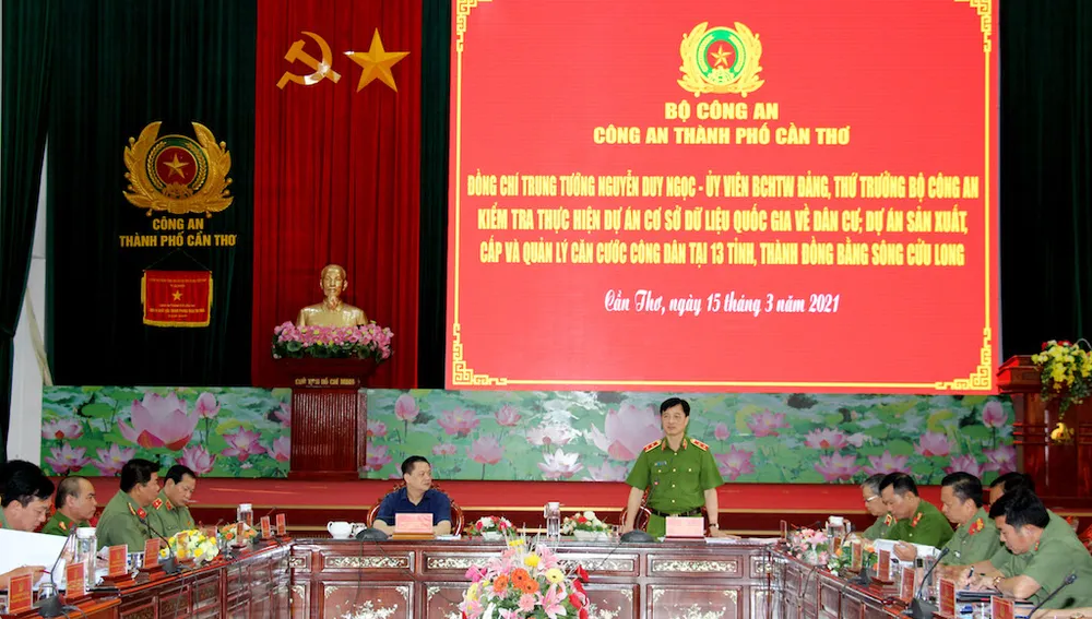 Ngày 15-3, tại Cần Thơ, Trung tướng Nguyễn Duy Ngọc, Thứ trưởng Bộ Công an cùng đoàn công tác đã có buổi làm việc, kiểm tra việc thực hiện Dự án cơ sở dữ liệu Quốc gia về dân cư và Dự án sản xuất, cấp và quản lý căn cước công dân (CCCD) tại 13 tỉnh, thành phố vùng Tây Nam Bộ.