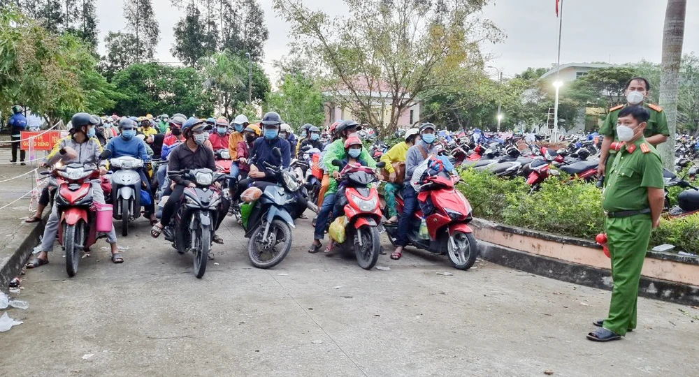 Thống kê đến chiều 3-10, Kiên Giang đã tiếp nhận hơn 10.000 công dân của tỉnh về quê bằng xe máy. Ảnh: VĂN VŨ
