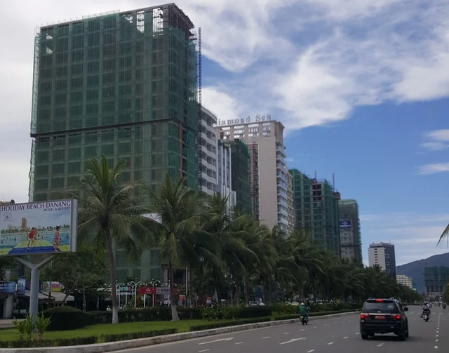 Theo quan sát của chúng tôi, dọc các tuyến đường Nguyễn Tất Thành (đoạn thuộc phường Xuân Hà, quận Thanh Khê), Phạm Văn Đồng (đoạn thuộc phường An Hải Bắc, quận Sơn Trà), Võ Nguyên Giáp, An Thượng 1 đến An Thượng 4, Đỗ Bá, Phan Tôn, Lê Quang Đạo, Hoàng Kế Viêm, Trần Bạch Đằng, Ngô Thì Sĩ (thuộc phường Mỹ An, quận Ngũ Hành Sơn)..., có ít nhất trên 40 khách sạn từ 4-15 tầng đang xây dựng dang dở.