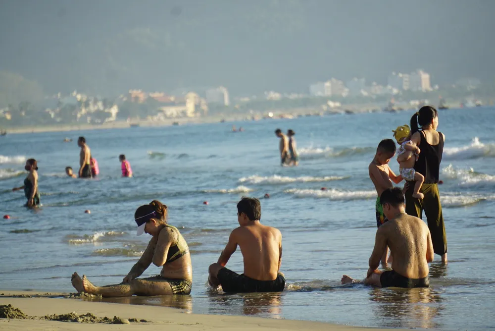 Du khách tắm biển Đà Nẵng. Ảnh: TÂM AN.