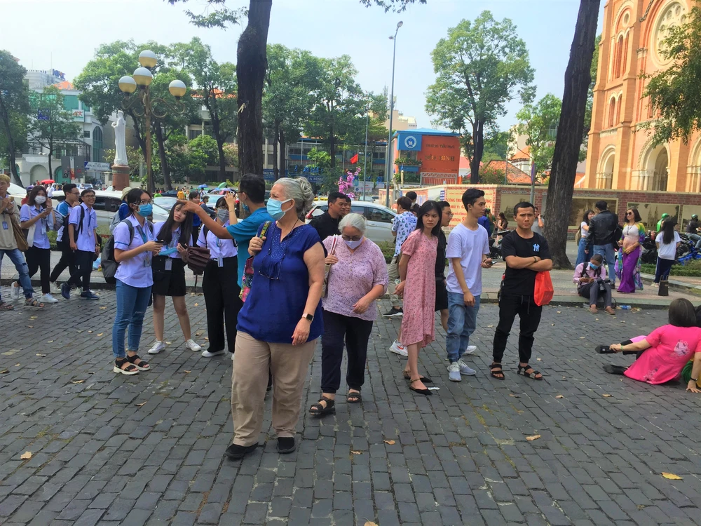 Du khách đang vào tham quan Bưu điện TP.HCM