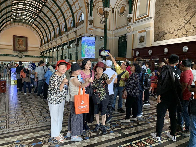 Do ảnh hưởng của COVID-19, ước tính ngành du lịch thiệt hại khoảng 7 tỉ USD. Trong ảnh: Khách du lịch quốc tế tham quan TP.HCM. Ảnh: TÚ UYÊN