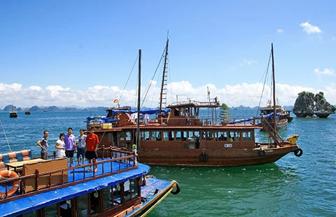 Nếu các DN cùng liên kết với nhau tạo nên sản phẩm du lịch giá rẻ, chất lượng dịch vụ theo chuẩn sẽ thu hút nhiều du khách và DN cũng có lợi. Trong ảnh: Các du khách đang tham quan vịnh Hạ Long. Ảnh: TÚ UYÊN