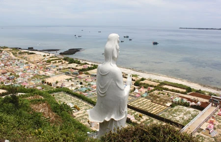 Ở phía đông của đảo Lý Sơn có chùa Đục. Chùa này nằm cạnh miệng núi lửa đã ngủ yên hàng trăm năm. Trước cửa chùa, một tượng Phật Bà Quan Âm cao hơn 30 m. Chúng tôi men theo những bậc đá lên cao, đến đỉnh của ngọn núi Thới Lới - một ngọn núi được hình thành từ nham thạch và có kết cấu hình lòng chảo trên đỉnh. Từ trên cao, phóng tầm mắt quan sát toàn cảnh xung quanh, trông thật ngoạn mục.