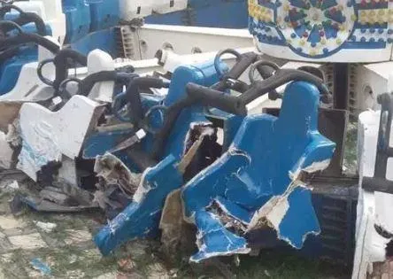 Ghế đu quay dập nát sau cú rơi. Ảnh: TWITTER