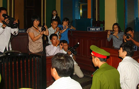 Các phóng viên đang tác nghiệp tại một phiên tòa hình sự của TAND TP.HCM. Ảnh minh họa: T.TÙNG