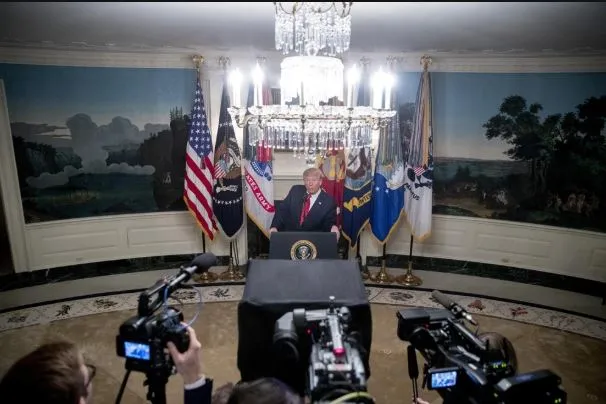 Tổng thống Trump phát biểu tại Nhà Trắng hôm 27-10 về việc tiêu diệt thủ lĩnh IS Baghdadi. Ảnh: AP