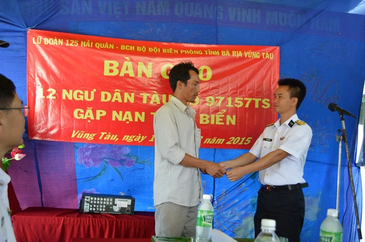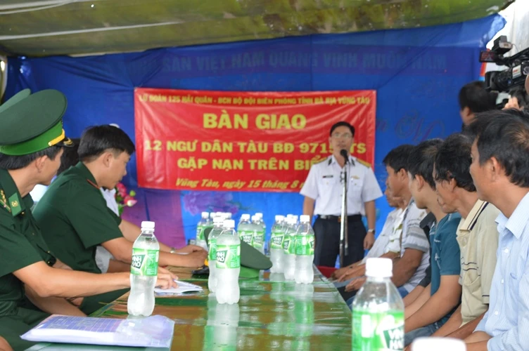 Ngay sau đó, Lữ đoàn 125 đã tổ chức lễ bàn giao 12 ngư dân cho Bộ đội Biên phòng tỉnh Bà Rịa-Vũng Tàu tiến hành các thủ tục cần thiết để chủ tàu đưa các ngư dân trở về quê.