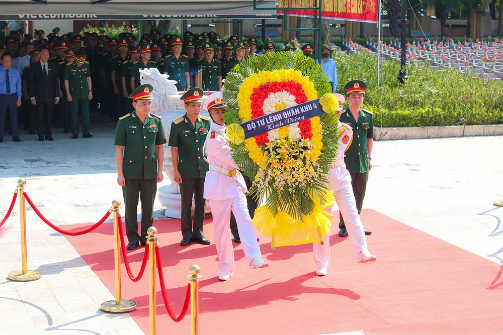 Lãnh đạo Bộ Tư lệnh Quân khu 4 dâng hoa, dâng hương. Ảnh: BẢO THIÊN |