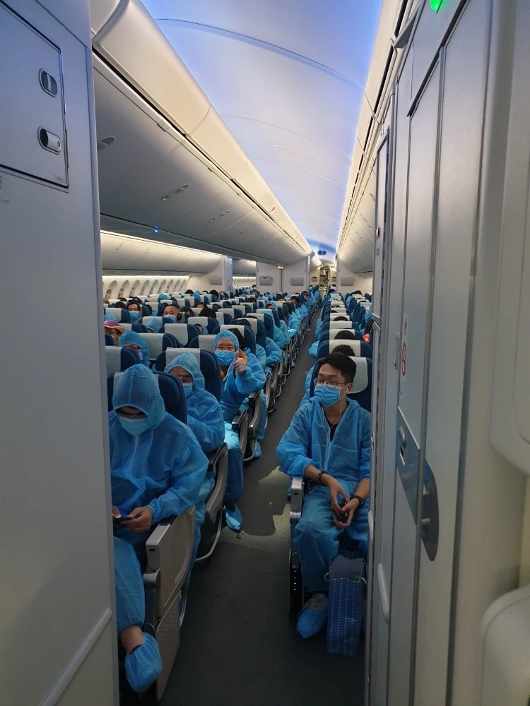Ngay sau khi hạ cánh an toàn xuống sân bay quốc tế Tân Sơn Nhất (TP.HCM), những người tham gia chuyến bay đã được kiểm tra y tế và đưa về cơ sở cách ly tập trung theo đúng quy định.