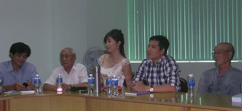 Nhà văn trẻ Tiểu Quyên và Trần Minh Hợp (bên phải) . Ảnh: N.Tý