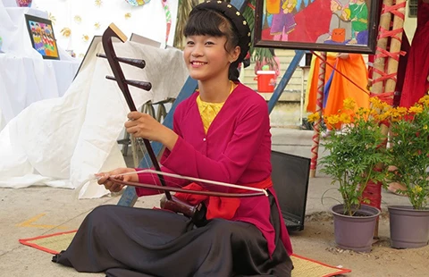 Nữ sinh duyên dáng bên nhạc cụ dân tộc tại Liên hoan Mỹ thuật và âm nhạc dân tộc quận 12 (TP.HCM) hôm 14-5. Ảnh: PHẠM ANH