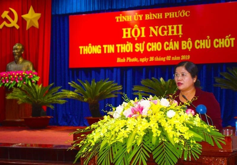 Bà Trần Tuệ Hiền, Phó Bí thư thường trực Tỉnh ủy Bình Phước, phát biểu tại Hội nghị. Ảnh: Hồng Sơn/binhphuoc.gov.vn