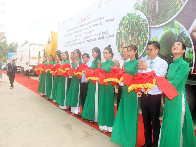 Chiều 17-9, Bộ NN&PTNT phối hợp với UBND tỉnh Bến Tre, Công ty Công ty Vina T&T (Bến Tre) công bố xuất khẩu lô hàng trái cây tươi sang thị trường Châu Âu theo Hiệp định Thương mại tự do Việt Nam- EU (EVFTA).
