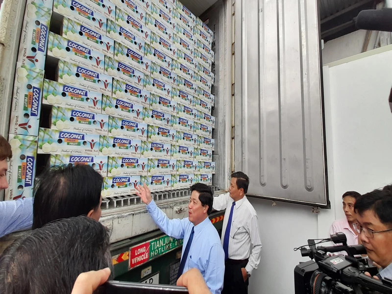 Ông Phạm Đình Tùng – Tổng giám đốc Công ty Vina T&T Group cho biết, đợt này công ty sẽ xuất khẩu lô hàng trái cây gồm: 20.000 trái dừa vào thị trường Anh, 12 tấn bưởi vào thị trường Đức và 3 tấn thanh long vào thị trường Hà Lan.