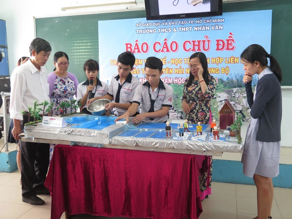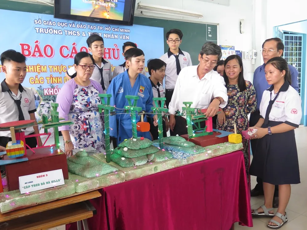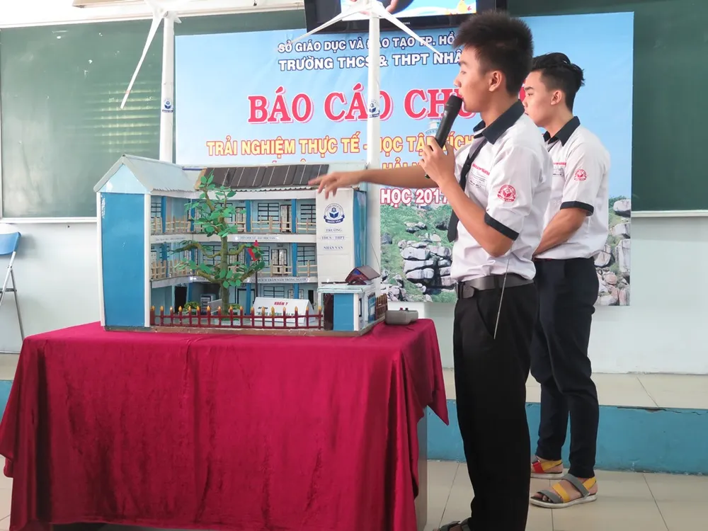 Thầy Trần Anh Tài, Phó hiệu trưởng nhà trường, cho hay đây là hoạt động giáo dục chủ đạo của nhà trường từ ba năm nay. Mỗi năm, từng khối lớp sẽ được nhà trường tổ chức các chuyến đi trải nghiệm thực tế ở các vùng miền khác nhau, cấp độ thực hiện đề tài cũng khác.