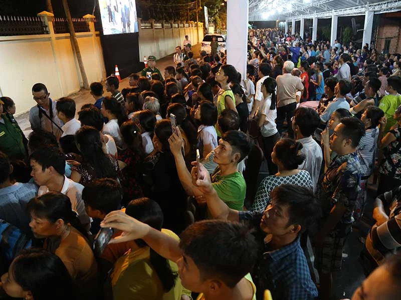 Hòa vào dòng người đưa tiễn, anh Tuấn (ngụ Vũng Tàu) nói: “Tôi đi từ 8 giờ sáng nhưng mãi đến 5 giờ chiều mới lên tới nhà bác. Trên đường đi nghe nói sắp đến giờ di quan, tôi càng lo lắng, may sao lên kịp. Chỉ mong được thắp cho bác nén hương và gửi bác bài thơ tôi tự làm để chia tay bác”. Anh Tuấn nghẹn ngào đọc bài thơ mình đã chuẩn bị, in sẵn trên mảnh giấy A4 thấm nhiều mồ hôi dọc đường đi.