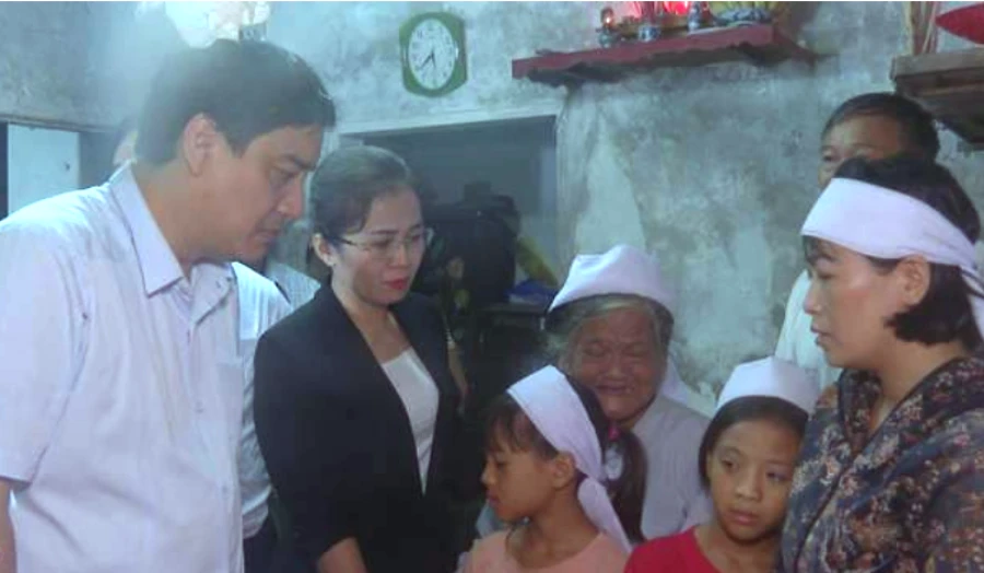 Ông Nguyễn Đắc Vinh- Bí Thư Tỉnh ủy Nghệ An thăm hỏi, động viên, trao tiền hỗ trợ cho gia đình thuyền viên Nguyễn Văn Hòa- bị tử vong trong vụ tàu chìm.