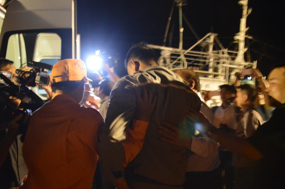 Thứ trưởng Nguyễn Văn Công động viên con trai của bếp trưởng trên tàu Hải Thành 26 hiện còn đang mất tích.