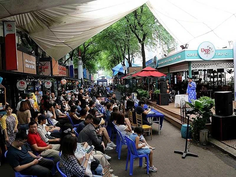 Đông đảo người tham gia buổi tọa đàm “Tản mạn về văn hóa Sài Gòn - TP.HCM” trên đường sách Nguyễn Văn Bình. Ảnh: NB