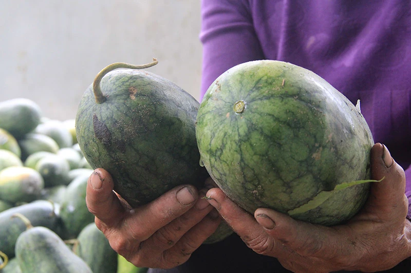 Những trái dưa dù ngọt đến mấy thì với người nông dân ở đây đã trở thành "trái đắng". Ảnh: Đ.TRUNG
