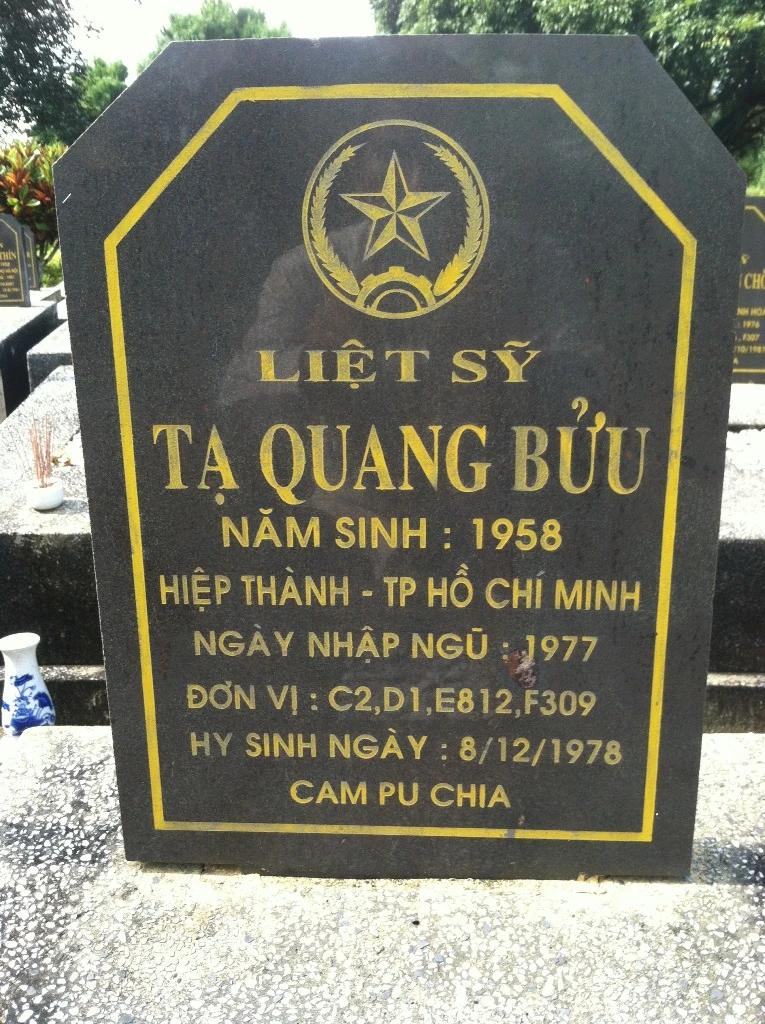 Việc tìm được mộ liệt sĩ kể trên khá đặc biệt và phải trải qua thời gian dài. Bởi liệt sĩ Tạ Quang Bửu, sinh năm 1958, quê ở Huế, nhưng gia đình vào sinh sống tại TP.HCM. Hiện gia đình còn mẹ là cụ Bùi Thị Uyển, 88 tuổi, đang ngụ ở huyện Củ Chi.