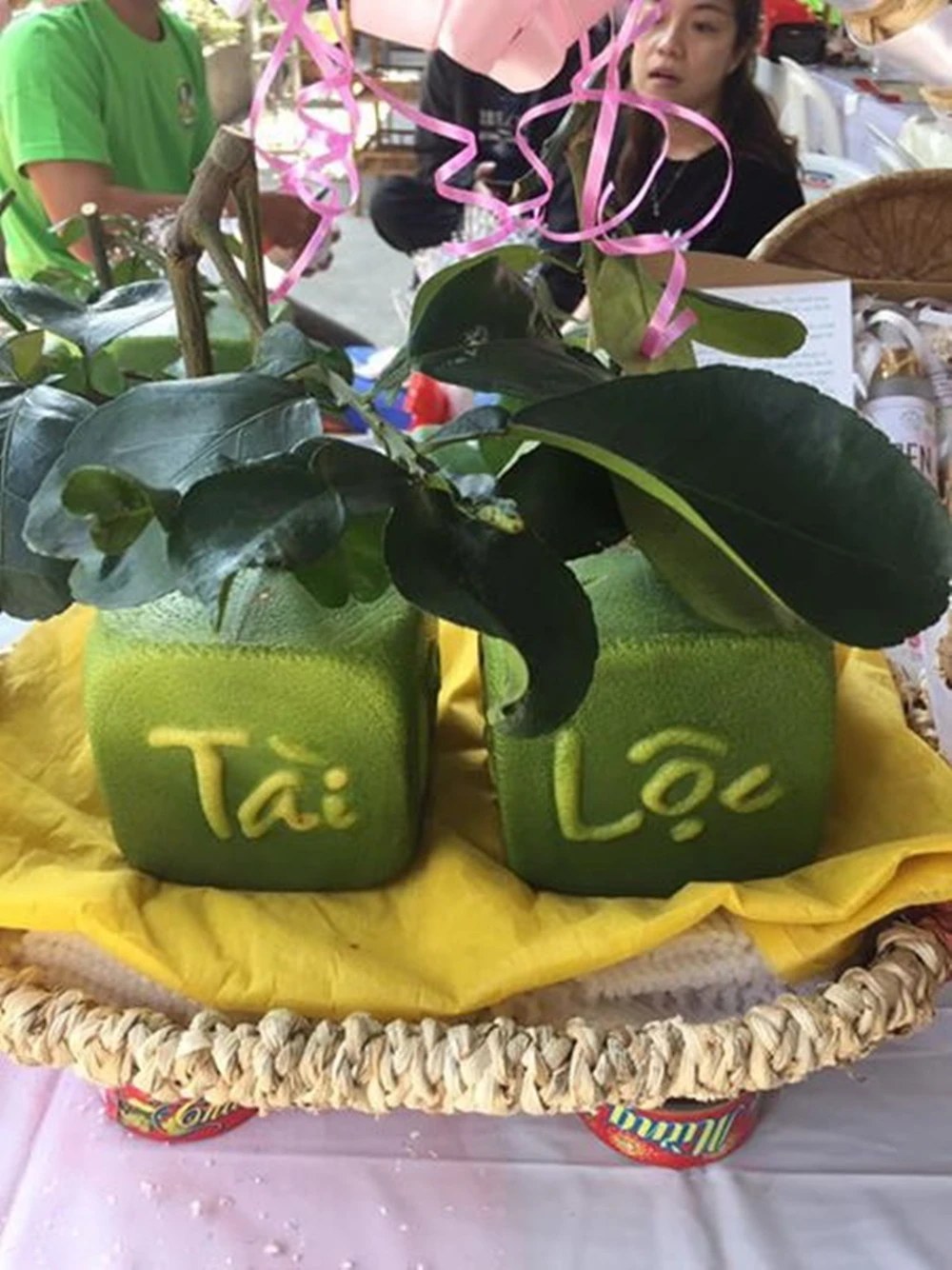 Bưởi thỏi vàng in chữ Tài Lộc.
