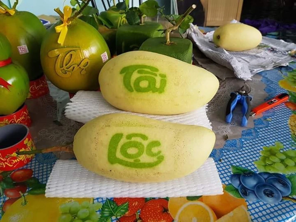 Mỗi trái xoài in chữ Tài Lộc có giá khoảng 200.000 đồng.